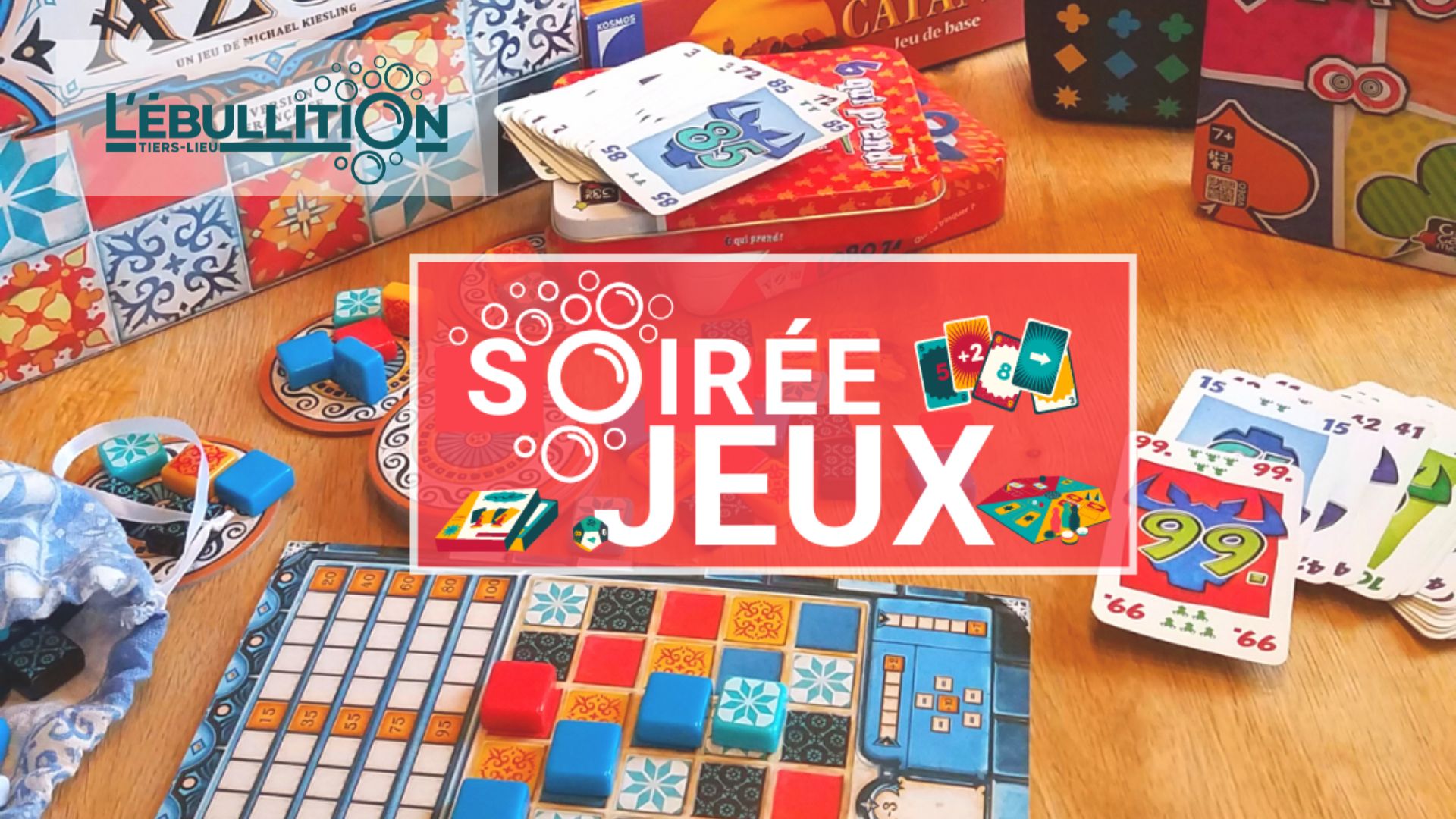 Jeux de société à Audiberti – 14h-16h30 JE JOUE, TU JOUES, NOUS JOUONS… Chaque deuxième vendredi du mois, l'Ebullition fait un tour à la Maison de Quartier Audiberti pour vous proposr une après-midi jeux de société. Découvrez des jeux simples, stratégiques, coopératifs. Apportez vos jeux préférés pour faire une partie et les partager. Un moment...