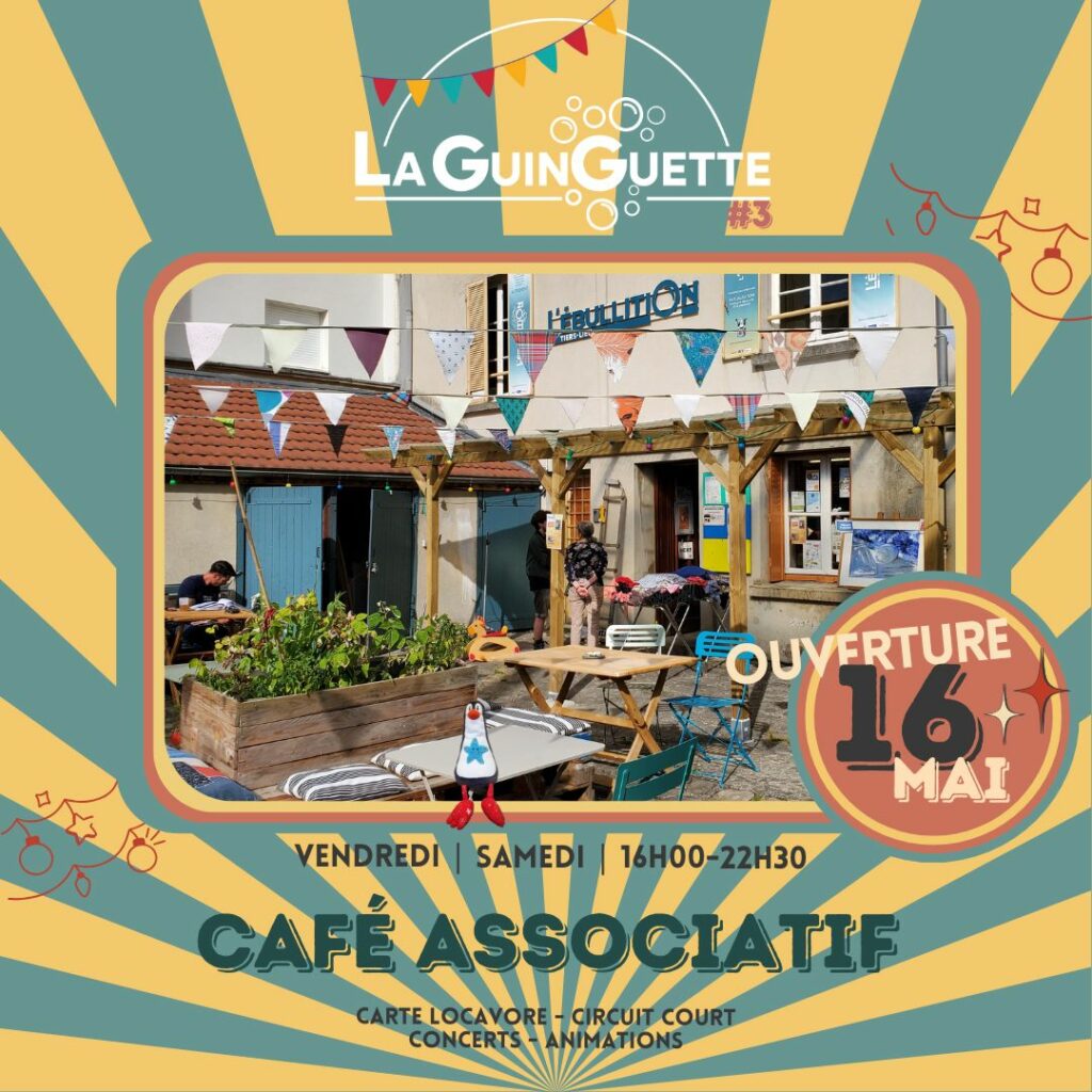 La Guinguette, c’est notre café associatif. Il prend ses quartiers d’été dans la cour à partir du 16 mai et jusqu’au 28 septembre 2025.